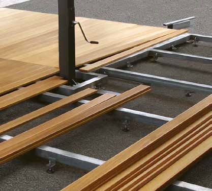 Una pedana può essere strutturata con diverse tipologie di sottoscocca, tra cui il sistema a magatello oppure quello moduli standard o su misura dotati di telai con differenti step di regolazione altezze. L’interasse di posa standard per i rivestimenti a doghe o pannelli è di 50 cm, variabile ad hoc solo sui moduli su misura. Le varie tipologie di telai modulari sono dotate piedini di livellamento per la regolazione delle altezze e opzionabili con predisposizioni per aggancio strutture (ombrellone/gazebo) e predisposizione perimetrale per aggancio pareti.